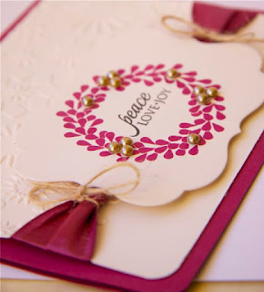 Other: Cuttlebug embossing folder/Purely Pomegranite ribbon (SU)/Adhesive Pearls/Rustic Twine/Mat Stack 4 die.